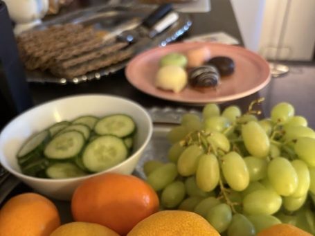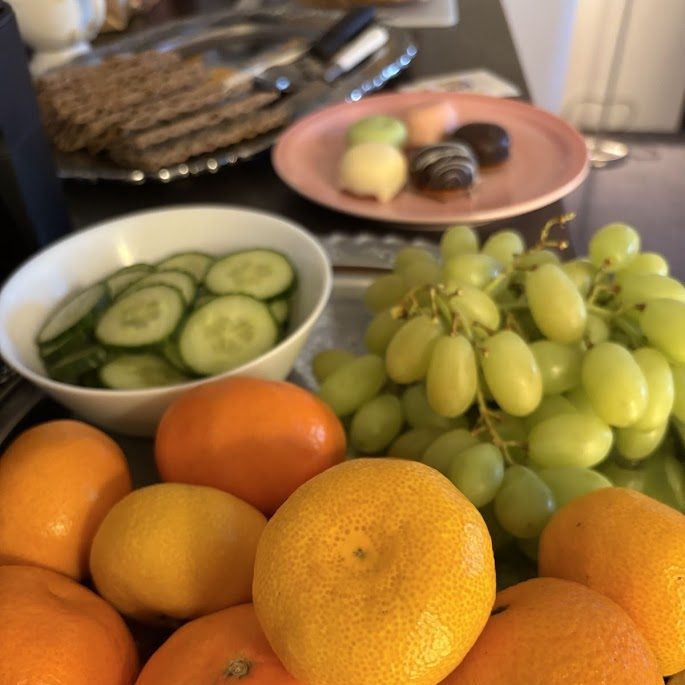 Det serverades frukt, samt glutenfritt bröd och biskvier, noggrant utvalda från ett lokalt bageri.